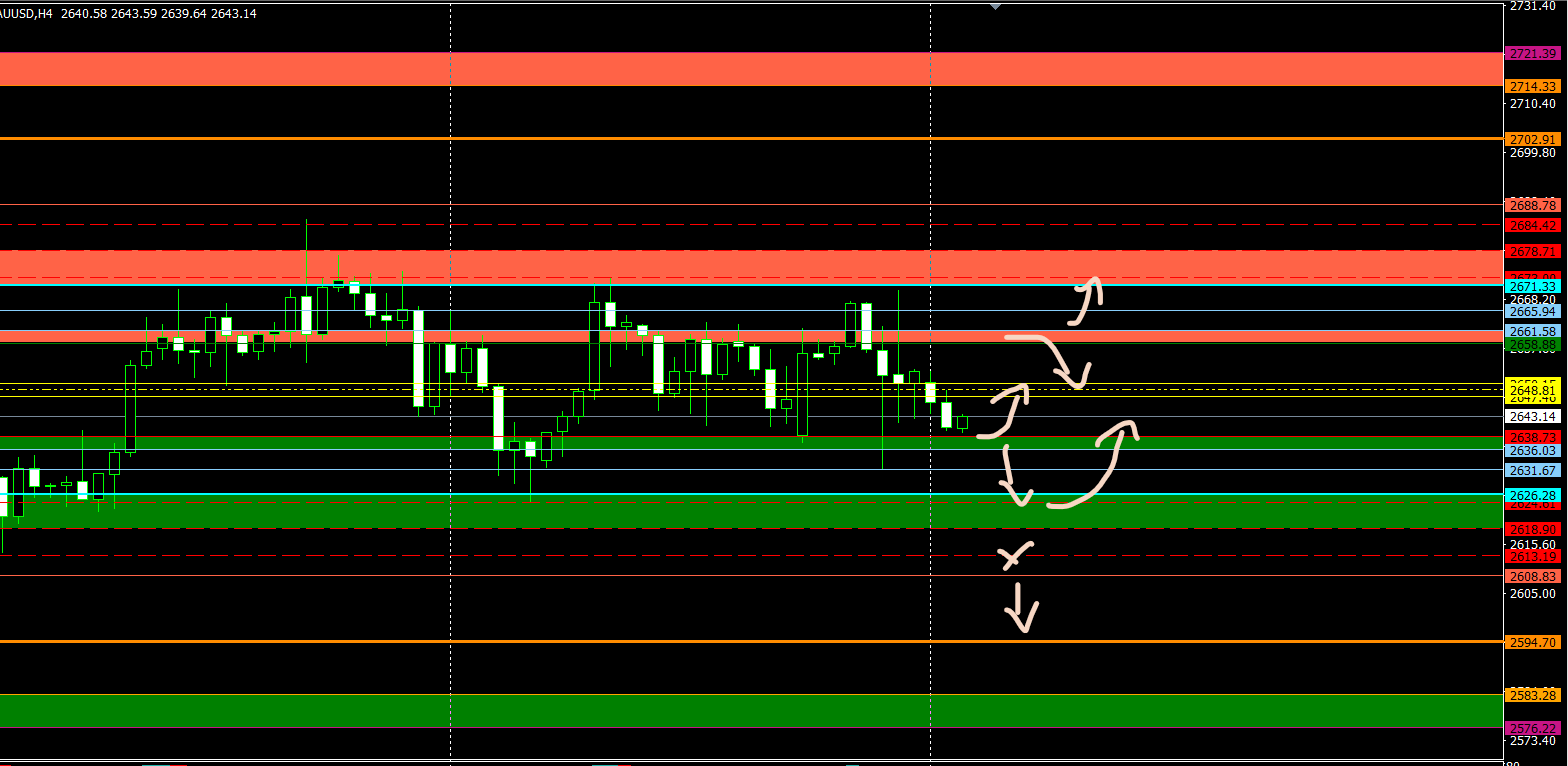 الذهب بين دعم 2636 -2638 و اغلاق شموع H4 اعلاها يصنع التذبذب ل 2649 و من بعدها لمستويات المقاومه 2659 -2661 و فى حال فشل كسر هذه المقاومه يستمر التذبذب ل 2649 و حتى 2636 من جديد .. بينما اغلاق شموع H4 اعلى 2659 داعم للمسار الصاعد حتى مستويات 2679 المقاومه الهامه و تهبط بنا ل 2649 من جديد فى حال فشل اغلاق H4 اعلى 2679 .. بينما تخطى 2679 يدفع الحركه لمزيد من الايجابيه لمستويات قد تصل ل 2685 و من بعدها 2688 - 2695 - 2702 .