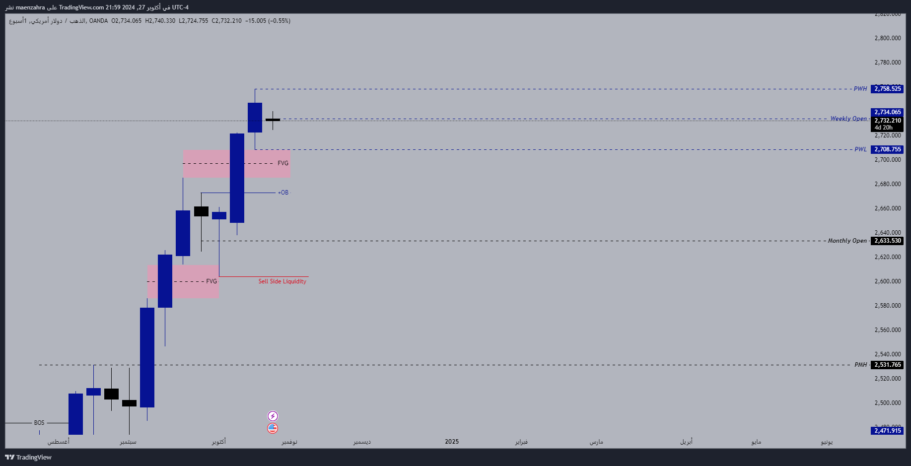2708 / 2685 مستويين مهمين كتير بالنسبة للذهب خسارتهم رح تدخلنا سلبية مؤقتة على الفريم الأسبوعي رح تكون نتائجها قوية على الفريمات الأصغر